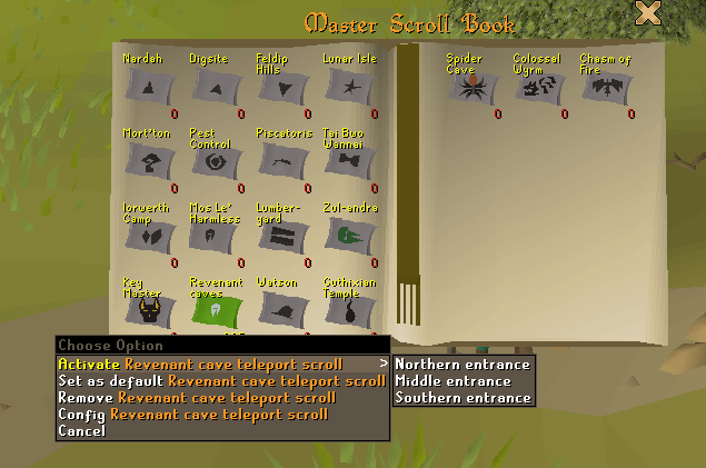 The Revenant Cave Teleport scroll now allows you to select any of the caves entrances, giving you quicker access to the area you actually want to reach. This should be particularly useful for players who prefer to play it a bit safer and start at the southern end of the caves, rather than the northern entrance.