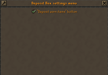 - You can now toggle the Deposit Worn Items button on/off in the Deposit Box Settings Menu, found in the top-right corner of the Deposit Box interface.